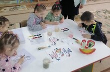Балаларны рәсем шөгылендә рус халык уенчыклары белән таныштыруны дәвам итеп дымка уенчыкларын бизәргә өйрәндек.