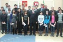 Муниципаль район башлыгы, район Советы рәисе Ришат Хәбипов "Мизгел" яшьләр үзәгендә укучыларның 8 нче республика спартакиадасында җиңү яулаган егет-кызларны тәбрикләде. Спорт төрләре буенча яхшы күрсәткечләргә ирешкән яшь спортчылар һәм аларның тренерлары район башлыгы кулыннан акчалата премияләр алдылар. Алар арасында безнең мәктәпнең 10 нчы сыйныф укучысы Маннанов Динар Фирдәвес улы да бар иде. Динар, сине чын күңелдән тәбрик итәбез һәм киләчәктә дә уңышлар телибез.