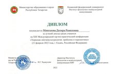Безнең укучыбыз Минһаҗева Диләрә "Төрки лингвокультурология: проблемалар һәм перспективалар" исемле XIII Халыкара фәнни-гамәли конференциясендә укучылар арасында иң яхшы доклад өчен диплом белән бүләкләнде. Җитәкчесе: Дәүләтова Р. Ф. Котлыйбыз!