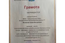 9 нчы сыйныф укучысы Мингазова Зөһрә "English Art Festival" дип аталган республикакүләм бәйгедә 1 нче урын яулады. Аны чын күңелебездән котлыйбыз.