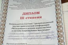 5 нче март көнне Казан (Идел) федераль университетында "Милли матбугат системасында яшьләр һәм балалар журналистикасы” дигән темага I республикакүләм фәнни-методик конференция узды. Безнең районнан Тойгелде төп гомуми белем бирү мәктәбенең татар теле һәм әдәбияты укытучысы Р.Ф. Дәүләтова катнашты һәм 3 дәрәҗә Дипломга лаек булды.