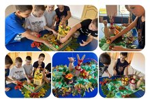 Сегодня воспитанники старших групп наслаждались красотой осенней природы.Они собирали материалы для композиции. А вечером с энтузиазмом делали осеннюю композицию. Воспитанники с охотой занимаются с творчеством.