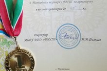 В «Детско-юношеской спортивной школе» Муслюмовского муниципального района Республики Татарстан прошел Новогодний турнир по армспорту. В весовой категорий до 45 кг. ученик 5класса Нижнетабынской школы –интернат для детей с ОВЗ занял первое место.