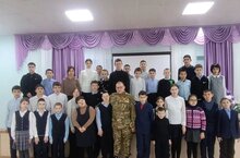 19 февраля в рамках военно-патриотического месячника в нашей школе состоялась встреча с ветераном специальной военной операции Рузалем Ринатовичем Зайнутдиновым .