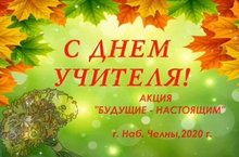 С 25 сентября по 6 октября 2020 года состоялась акция «Будущие - настоящим!». В акции приняли участие педагогические группы обучающихся общеобразовательных организаций Центрального района - участники городской программы «Успех в твоих руках» из 11 ОО №№: 13, 18, 25, 26, 31, 32, 35, 38, 45, 50, 53. Ребята из педагогических групп записали видео поздравления для учителей нашего города. Видео поздравления от педагогических групп были объединены и смонтированы в единый видеоролик, который был размещен в Международный День учителя в социальных сетях Instagram и ВКонтакте c хэштегами #будущиенастоящим #любимыйучительчелны #cднемучителячелны. Присоединяемся к акции и поздравляем любимых педагогов с Днем учителя!