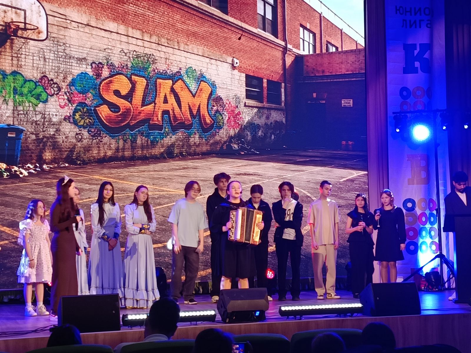 20 апреля состоялся финал Юниор-Лиги КВН. Организаторами мероприятия являются: управление образования, Детско-юношеский центр №14, молодежный центр «Нур», Клуб Весёлых Набережночелнинцев, местное отделение РДДМ «Движение Первых».