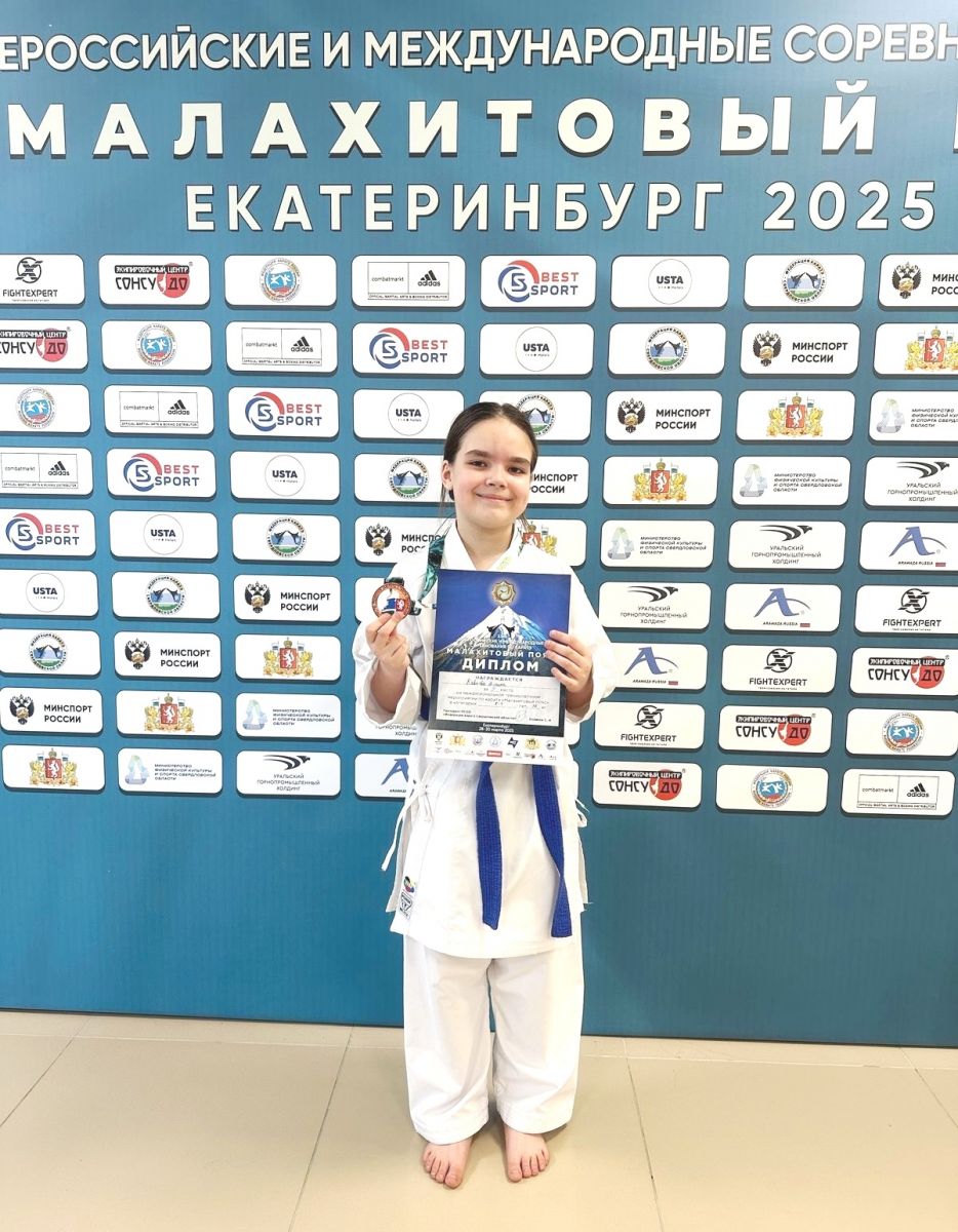 Наша спортсменка из объединения «Каратэ» — Кавиева А., тренирующаяся под руководством педагогов Карпухиных Дениса Викторовича и Даниила Денисовича, завоевала бронзовую медаль.