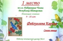 Поздравляем с победой во Всероссийском детско-юношеском конкурсе рисунка и прикладного творчества «Птички-невелички» воспитанницу объединения «Основы иллюстрации художественного текста» Файзуллину Карину и педагога Серебрякову М.Г.