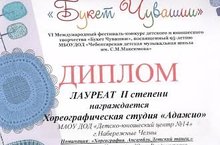 30 марта 2015 года воспитанники хореографической студии «Адажио» приняли участие в международном конкурсе-фестивале «Букет Чувашии» в г. Чебоксары. Младшие воспитанники студии с номером «Солдатушки» выступили на гала-концерте фестиваля. Коллектив вернулся со следующими результатами: