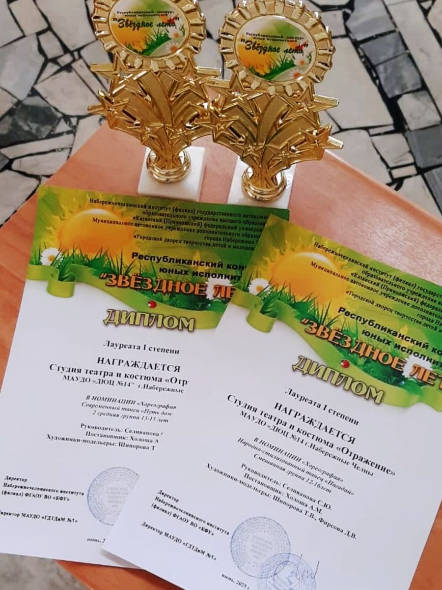 Обучающиеся Студии театра и костюма «Отражение», а также их педагоги заслуженно празднуют победу на республиканском конкурсе юных исполнителей «Звёздное лето».