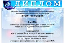 Поздравляем Владимира Константиновича с победой в региональном конкурсе профессионального мастерства по проектированию современного занятия «Время инноваций»