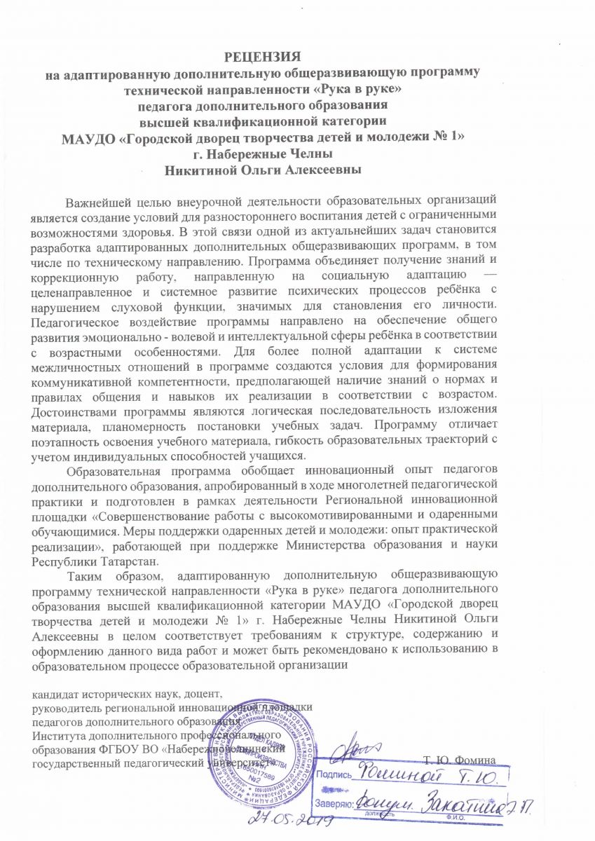 Рецензия на адаптированную программу Рука в руке