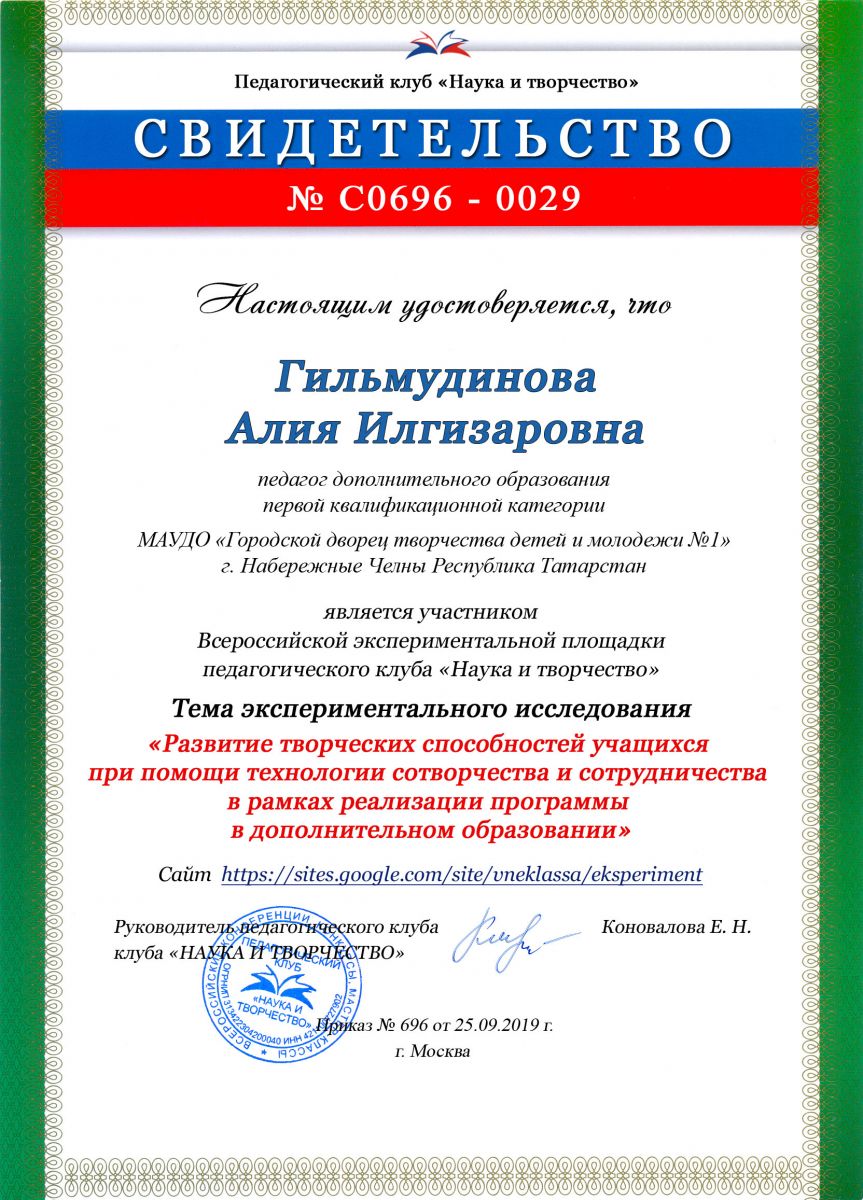Свидетельство Гильмудинова Алия Илгизаровна.