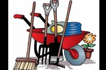 Наши школьники приводят территорию гимназии в порядок: собирают семена цветов, выкапывают засохшие цветы, собирают листву.