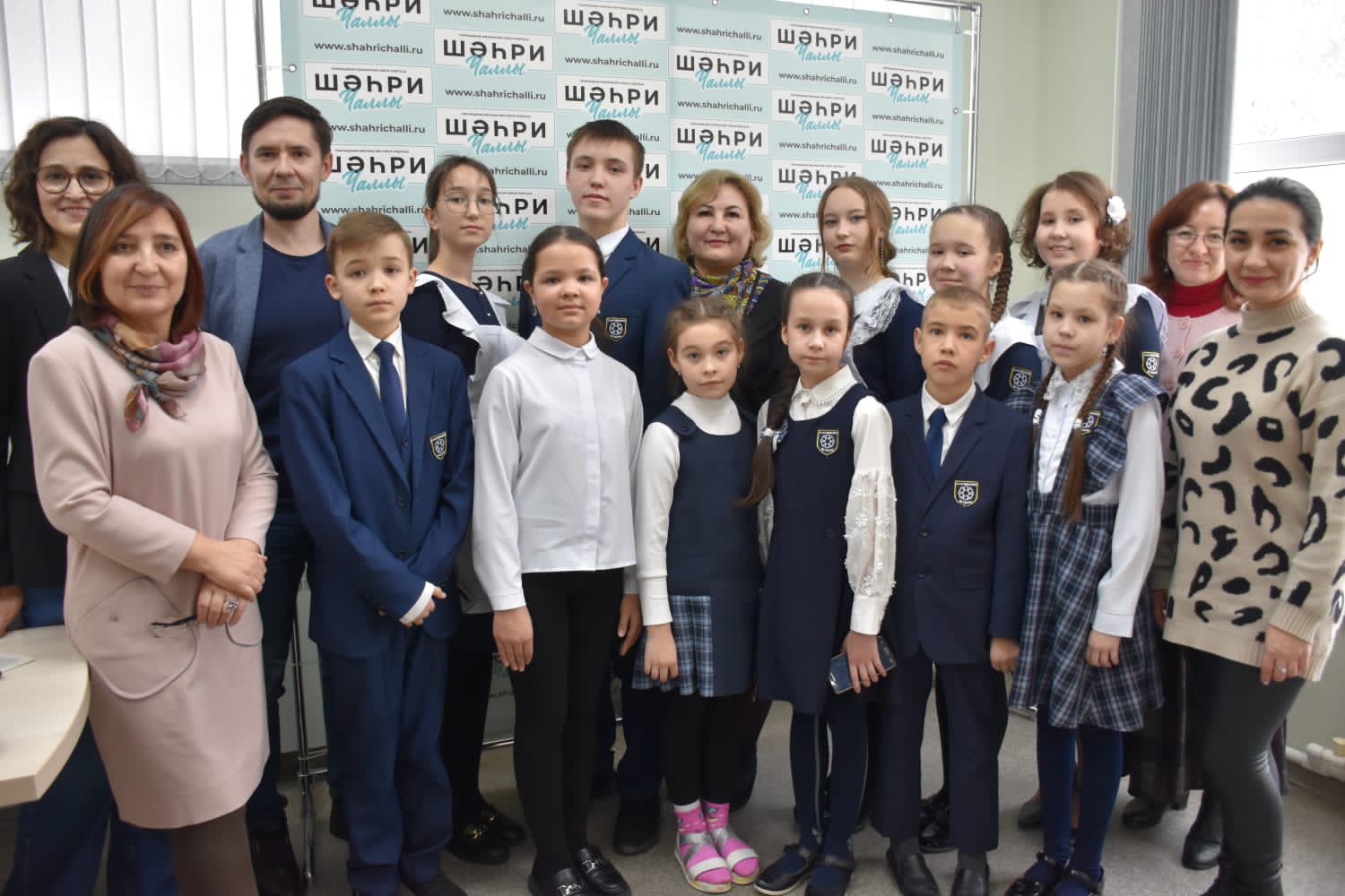 Гимназия укучылары "Шәһри Чаллы" газетасы редакциясе чакыруы буенча шәhәребезнең татар мәтбугаты үзәгендэ булдылар. Әлеге очрашу шул ягы белән отышлы: укучылар "Шәһри Чаллы" , ,,Көмеш кыңгырау " газеталары, ,,Мәйдан" журналы хезмәткәрләренең барысы белән берьюлы күрештеләр, чөнки алар бергә бер бинада, хәтта бер эш бүлмәсендә эшлиләр икән! Укучыларны каршы алгач, журналистлар, узлзренең вазифалары нинди булудан чыгып, элеге hөнәрнең нечкәлекләрен аңлаттылар. Редакциянең hәр хезмәткәре үз эшенең остасы икәнлегенә укучылар ышанды. Аннан инде иң кызыгы башланды: контакт челтәрендә туры эфирга чыгып, узебезнең гимназиядэ чыга торган ,,Минем гимназиям" газетасы тарихы хакында тәфсилләп сөйләү булды. Кунакка буш кул белэн килмилэр, дигәндәй, безнең укучылар да Лилия Фаттахованың мәсәлләрен ятлап килгәннәр иде. Нәфис сүз бәйгесе диярсең, шәп итеп ятлаганнар! Әле шуңа өстәп моңлы җырлар да сузып җибәрделэр. Рәхәт очрашу мизгелләрен сузарга теләп, туйганчы фотоларга төштеләр, әле интервью алырга да өлгерделәр. Менә шушындый истәлекле көн булды, журналистларны жаваплы эшлэреннән беразга гына аерып торсалар да, укучылар канәгать калды.
