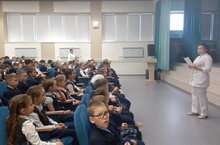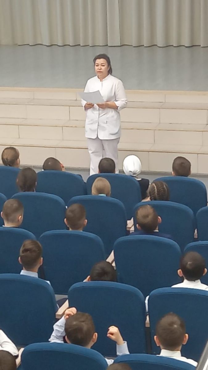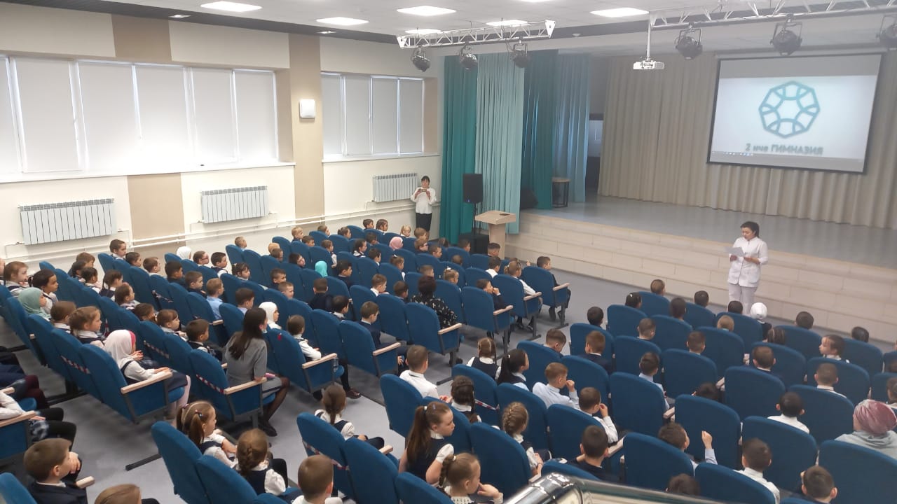 Башлангыч сыйныф укучылары, рәхәтләнеп, «Прививкадан курыккан су сыеры (бегемот)» турында мультфильм карадылар. Гимназия фельдшеры Файзрахманова Айгөл Гаязовна прививкаларның әһәмияте хакында сөйләде. Язын бигрәк тә урманнарда, паркларда урман бете тешләү очрагына тукталды, саклык чараларын искәртте.