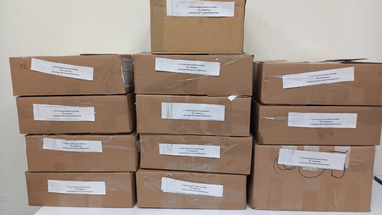 Шәһәребездә “ДНР һәм ЛНР качакларына ярдәм” акциясе бара. Шул нисбәттән, бу акциядә Мулланур Вахитов исемендәге 2 нче гимназия укучылары, аеруча башлангыч һәм урта звенода укучылар, бик актив катнашты. Ил төкерсә күл була, дигән мәкаль бар. Чит кайгыны үз итеп укучылар, әти - әниләр белән берлектә, бик күп кенә концтоварлар, төсле нәфис китап -журналлар, өр - яңа кием – салымнар алып килделәр. Укучылар советы активистлары ярдәме белән алар берничә тартмага тутырылды һәм билгеләнгән вакытка җыю пунктларына илтеп тапшырылды.