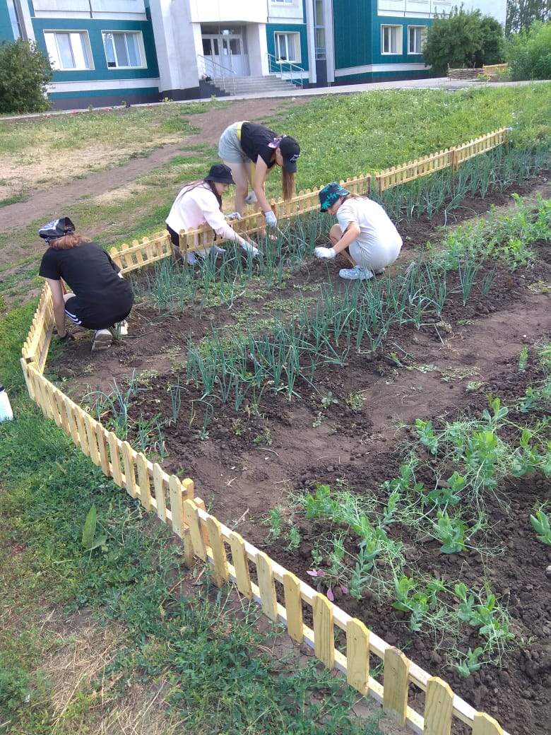 Безнең гимназия укучылары мәктәп яны практикасында тирә – юньне матурлау буенча үзләреннән зур өлеш кертәләр. Кызу июль ае булуга карамастан, алар рус теле һәм әдәбияты укытучысы Галиева Алсу Икрамовна һәм җыр укытучысы Шәйгарданова Ләйсән Зөфәровна җитәкчелегендә территорияне чүп – чардан арындыралар, чәчәкләргә, яшь куакларга су сибәләр, чүп утыйлар. Шулай ук тәҗрибә участогын тәртиптә тоту да алар өстендә. Укуда белем туплап, тәрбия чарасы буларак үткәрелгән төрле конкурсларда, спектакльләрдә катнашып, эстетик тәрбия алсалар, биредә исә хезмәт күнекмәләрен ныгыталар. Фоат абый Закиров ясаган “Авыл ишегалды”ндагы эскәмьядә ял иткәннән соң янә тырма, лейкаларын кулга алалар. Кызу кояш астында бер тамчы суга тилмереп утырган чәчкә – куакларга су сибүгә алар тагын да купшыланып китә. Менә шулай кечкенә чактан ук табигатьне аңларга, матурлыкны күрергә өйрәнәләр укучылар. Аларны өйрәтүче, хезмәтләрен күреп һәрдаим мактап, үсендереп торучы Алсу Икрамовна, Ләйсән Зөфәровна булганда бу укучыларның чын кеше булып үсүләре бәхәссез.