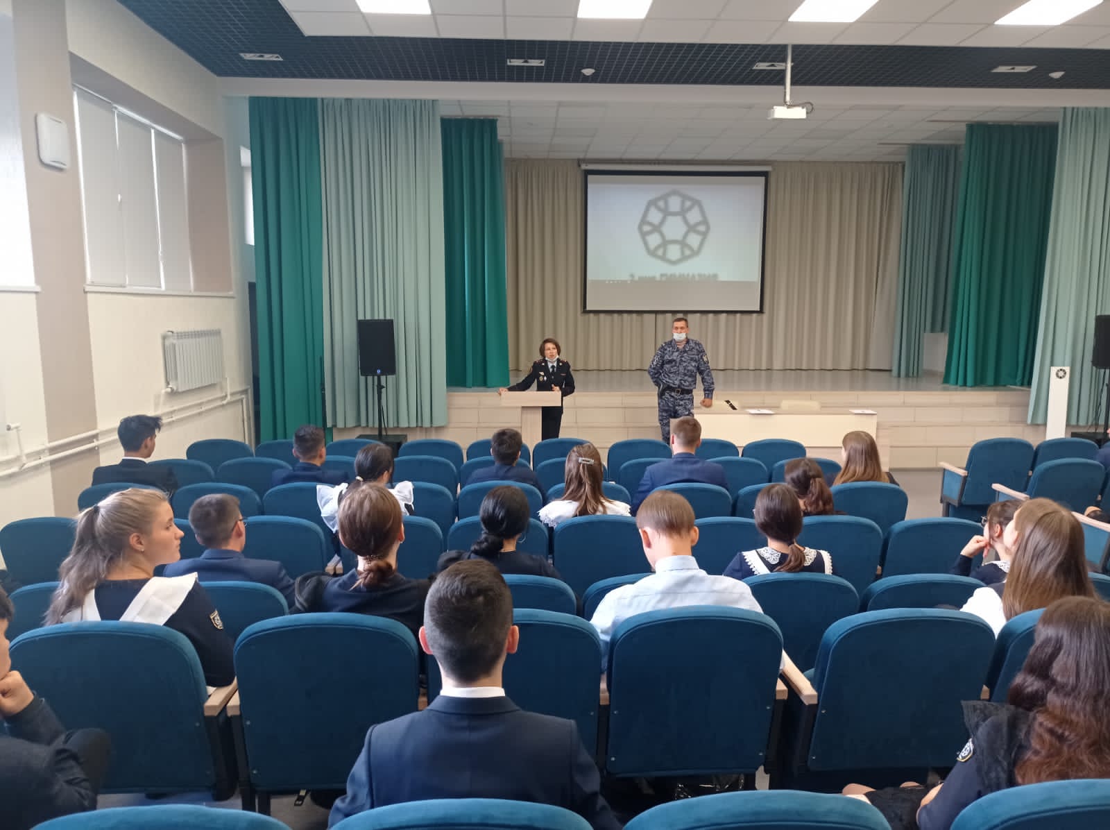 6 нчы сентябрь. М Вахитов исемендәге гимназиядә “Терроризмга каршы бердәм көрәш көне” уңаеннан планлаштырылган чараларның берсе – Яр Чаллы шәһәре Росгвардия хезмәткәрләре Ильязов Илшат Фарит улы һәм психолог, полиция капитаны Горячева Надежда Анатольевна белән очрашу булды. Барлык санитар таләпләргә туры килерлек итеп үткәрелгән очрашуга 10 – 11нчы класс укучылары чакырылды. Аларга гимназиядә һәм җәмәгать урыннарында үз – үзеңне тоту кагыйдәләре турында мәгълүмат бирелде, терроризм һәм экстремизмның җәмгыять өчен никадәр куркыныч булуы аңлатылды, тормышка куркыныч янаган очракта үз-үзеңне тоту кагыйдәләре җиткерелде.
