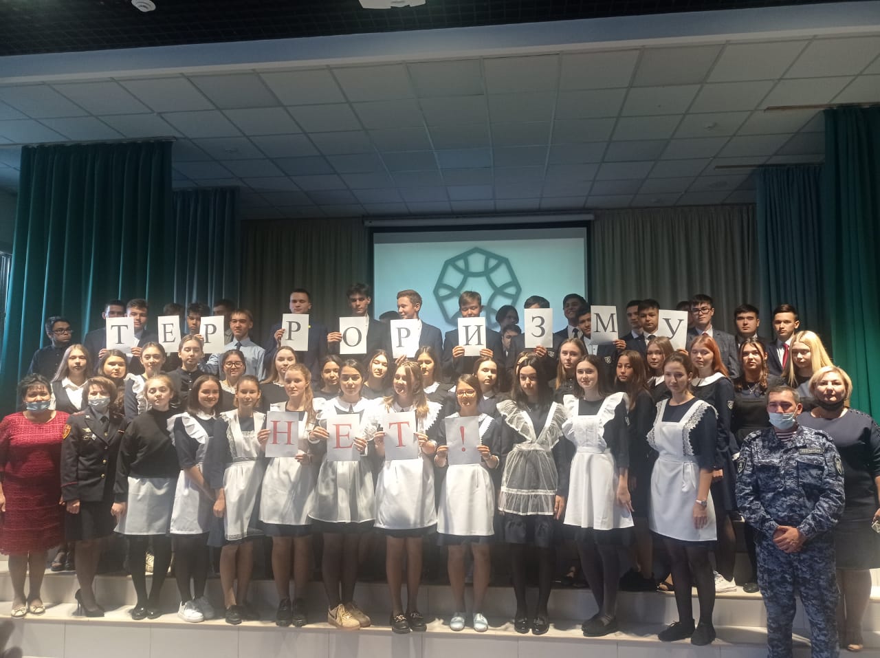 Мулланур Вахитов исемендәге 2 нче гимназиядә 2021 нче елның 3 нче сентябрендә “Терроризмга каршы бердәм көрәш көне “ уңаеннан 1- 11 нче сыйныфларда бердәм класс сәгатьләре узды.