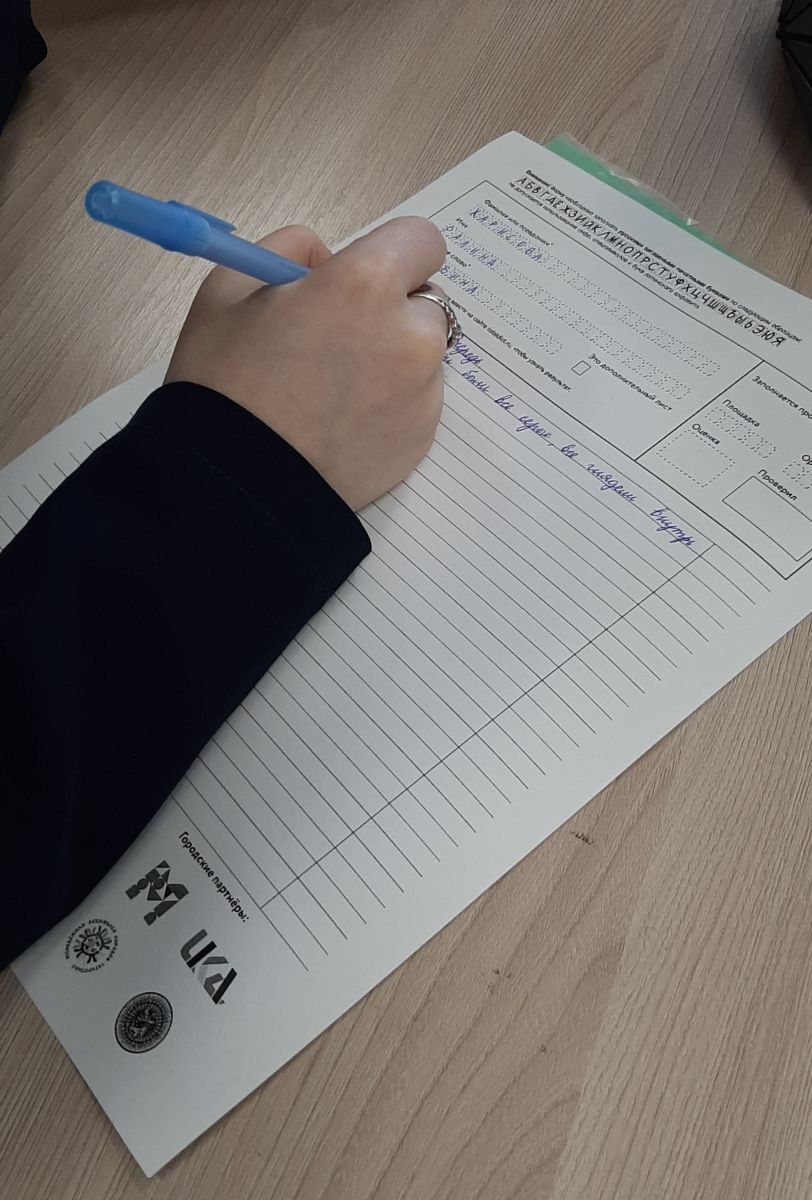 Сегодня,10 апреля, проходит ежегодная просветительская акция "Тотальный диктант". Цель акции — показать, что быть грамотным — важно для каждого человека; убедить, что заниматься русским языком нелегко, но увлекательно и полезно; объединить всех, кто умеет или хочет писать и говорить по-русски. Ученики 2 гимназии тоже приняли участие в данной акции и написали диктант по русскому языку по тексту "Очередь".