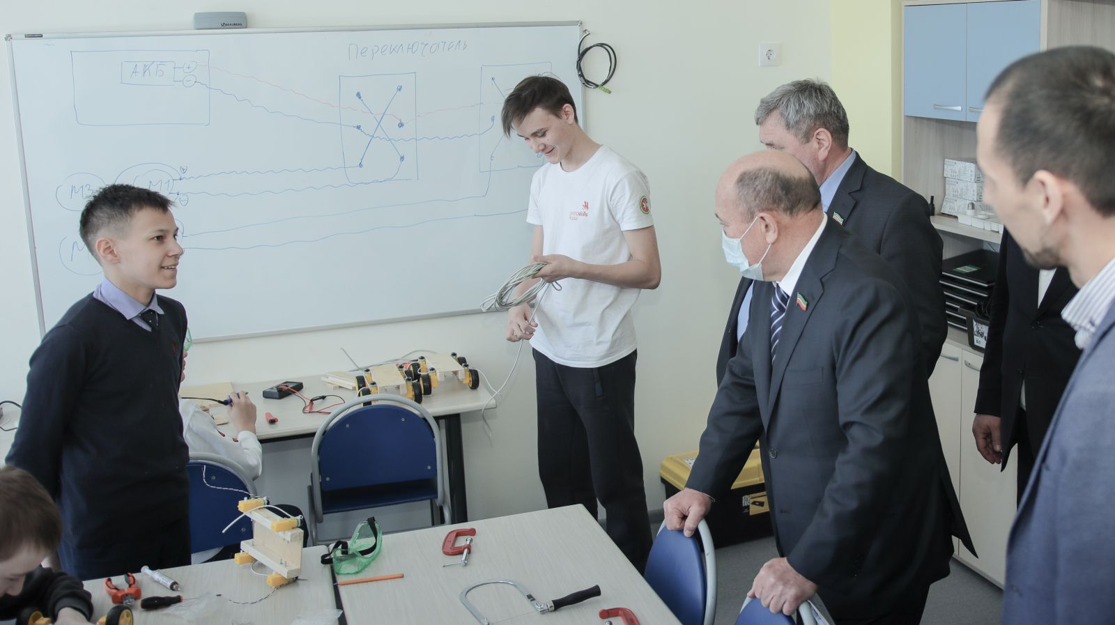Буген безнең гимназиядә Татарстан Республикасы Президенты каршындагы татар телен саклау һәм үстерү мәсьәләләре комиссиясе рәисе, Татарстан Республикасы Дәүләт Советы рәисе урынбасары Марат Готыф улы Әхмәтов башлыгында "Хәзерге чор шартларында рухи тормышыбызның усешен тәэмин итү: милли матбугат чаралары һәм татар телендә белем, тәрбия бирү мәсьәләләре" дип аталган түгәрәк өстәл узды.