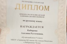 Рус теленнән республикакүләм олимпиадада ПРИЗЕР булган 9 сыйныф укучысы КАБИРОВА АДЕЛИНАНЫ чын күңелдән котлыйбыз! Укучыны олимпиадагаәзерләгән укытучы Зухурова Айгөл Рамилевнага рәхмәт белдерелә.