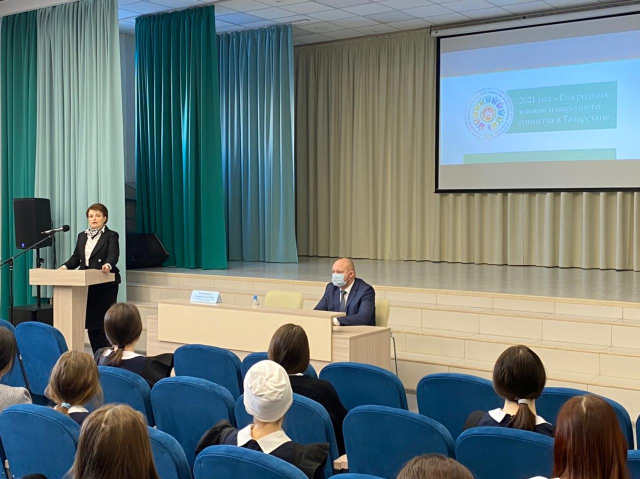 Буген гимназиядә туган телләр һәм халыклар бердәмлеге елына багышланган парламент дәресен Шәһәр Советы депутаты, Чаллы дәүләт педагогик университеты ректоры Галиакберова Альфинур Азат кызы үткәрде.