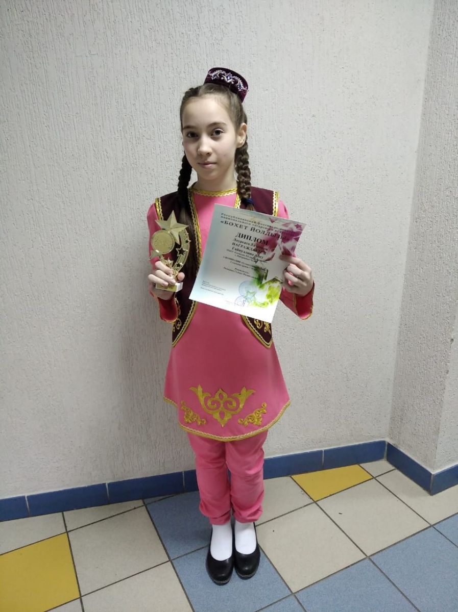 Поздравляем Хамадиеву Лейсан - призера городского конкурса патриотической песни "Красная гвоздика" в номинации "Соло".