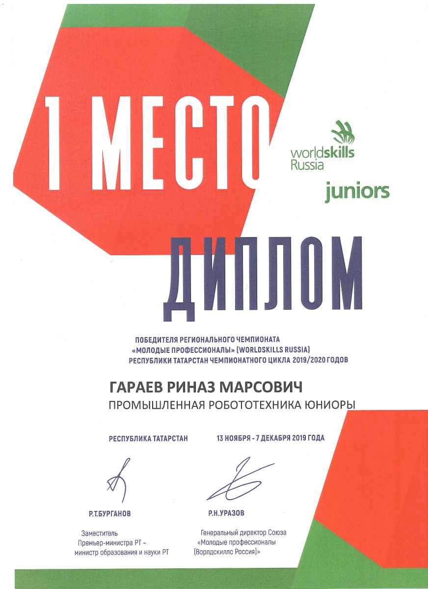Поздравляем победителя регионального чемпионата "WORLDSKILLS" по компетенции "Промышленная робототехника" - ученика 7 класса Гараева Риназа!