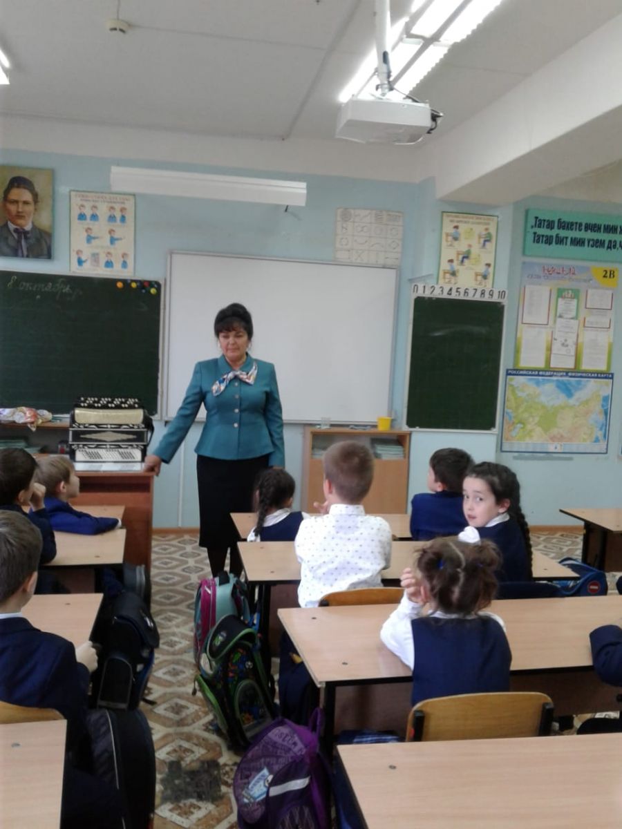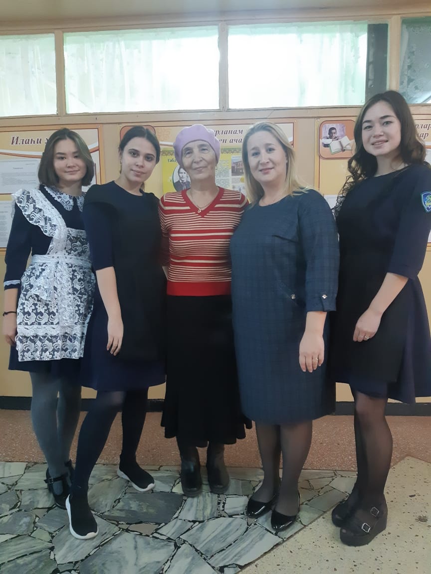 Соңыннан укучылар үз ветераннарын классларга чакырдылар. Очрашуга килә алмаган укытучыларны укучылар өйләренә барып котладылар.Тәрбия эшләре буенча директор урынбасары Харисова Э.М.