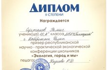 Республикакүләм “Экология, шәһәр һәм без” фәнни-гамәли конференциясендә II урынны алган 10А сыйныфы укучысы СУЛТАНОВ РӘМИСНЕ.