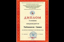 Табанакова Семена с 1 местом в региональной олимпиаде по английскому языку филиала "Нижегородского государственного лингвистического университета им. Н.А. Добролюбова", октябрь 2013 г.