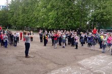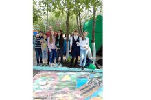 Учащиеся гимназии под руководством Юдаковой М.В. заняли 1 место в городском конкурсе рисунков на асфальте, посвященный "Празднику Победы", который состоялся на территории Парка Победы возле малой сцены.