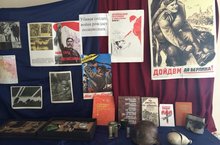 На третьем этаже нашей гимназии открыта уникальная экспозиция времен Великой Отечественой Войны. Представлены подлинные свидетельства событий - экспонаты из музеев и частных коллекций. Экскурсоводами являются учащиеся 6-х и 10х классов. Они подробно рассказывают о подлинных событиях тех лет, показывая праздничные боевые листки, плакаты, стенные газеты, приготовленные учениками гимназии к великой дате.
