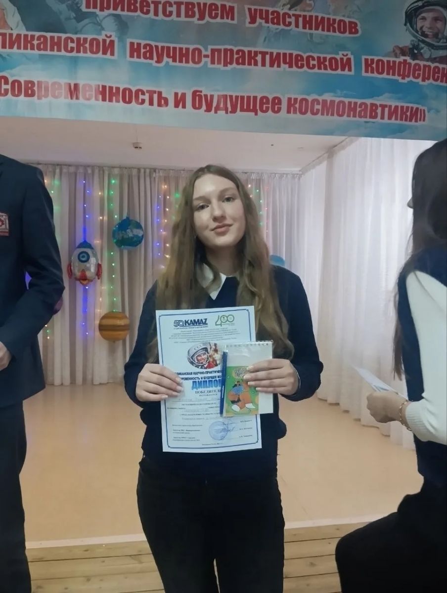 Гимназиябезнең укучылары Галләмов Сөләйманны, Ханова Ралинаны "Космонавтиканың хәзерге көне һәм киләчәге" дип исемләнгән республика конференциясендә лаеклы җиңү яулаулары белән котлыйбыз. Лилия Дамировнага хезмәте, балаларга ярдәме, конференциягә әзерләве өчен рәхмәт белдерәбез. Афәрин, Лилия Дамировна, Сөләйман, Ралина!