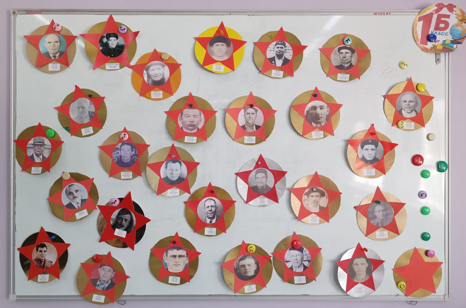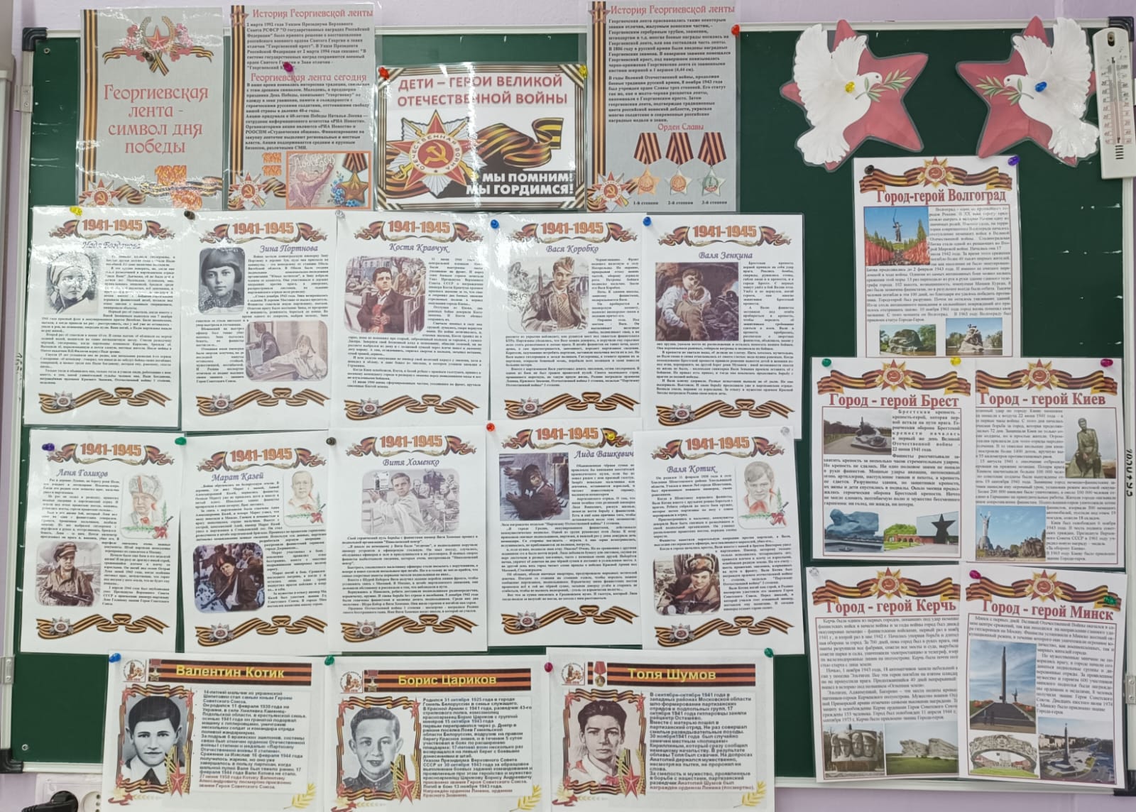 1б сыйныфы укучылары кечкенә булуга карамастан Бөек Ватан сугышында катнашкан балалар белән дә бик кызыксындылар. Алар нинди батырлыклар эшләгәннәрен өйрәнеп үттеләр. Шулай ук герой шәһәрләр белән дә таныштылар. Барсын да белгәннән соң рәсемнәр , газеталар ясадылар. Шигырьләр яттан сөйләделар.