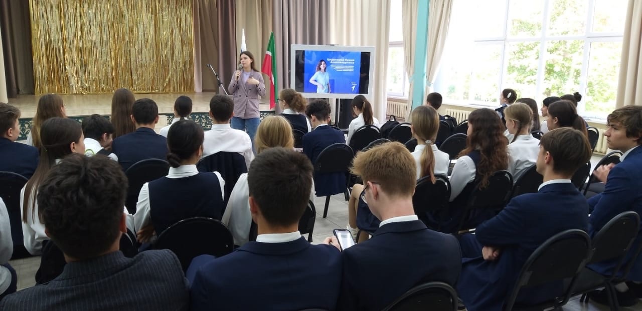 Сегодня,13.09.23,в гимназии состоялась встреча со специалистом Циденковой Ириной Александровной местного отделения «Движения первых» в Набережных Челнах.