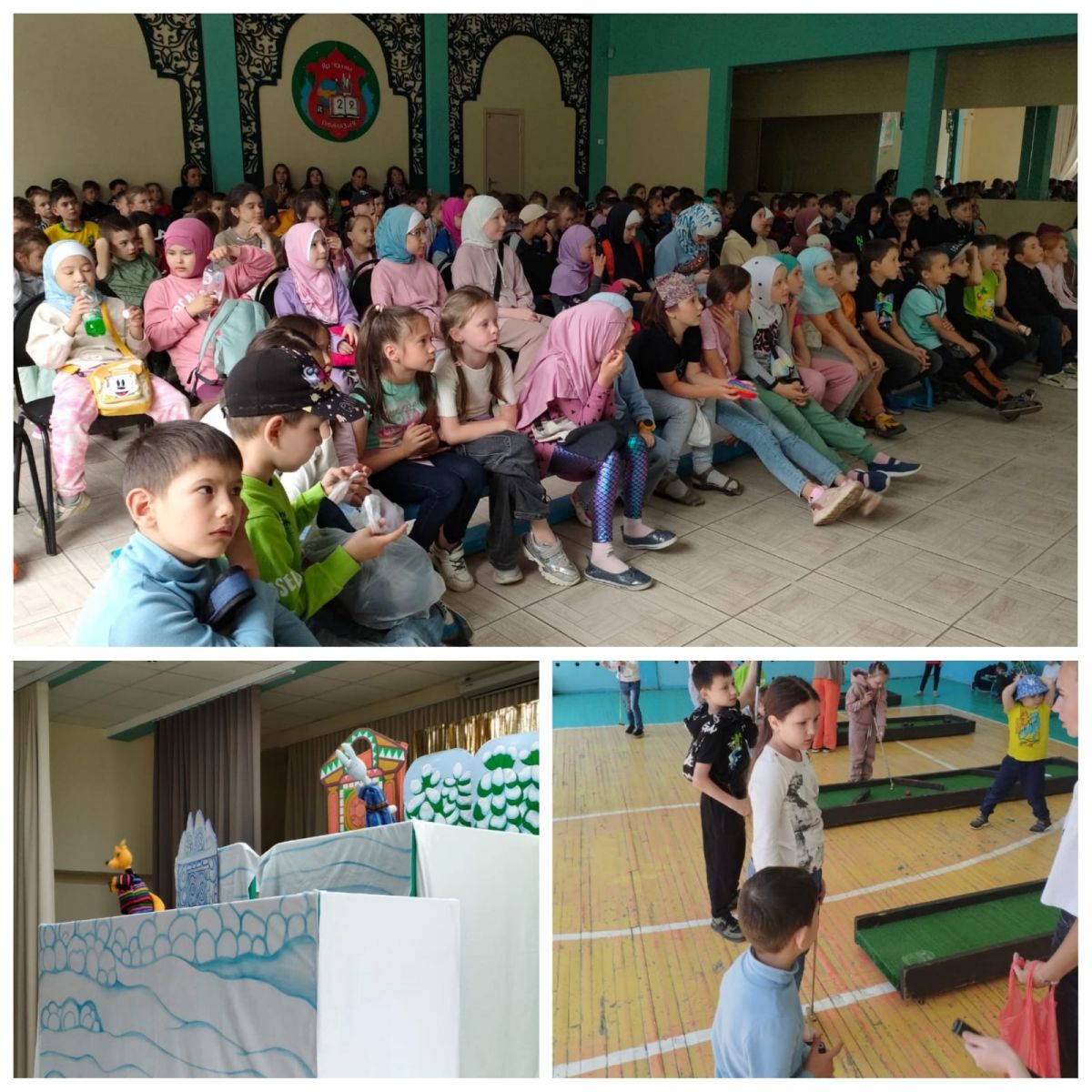 20 июня - День Спорта в пришкольном лагере "Пчёлка". После бассейна все отряды лагеря, познакомились с игрой "Мини гольф", были проведены соревнования, конкурс рисунков и беседа. Вечером дети посетили театр и провели спортивный час.