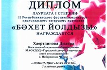 И снова победа на фестивале "Бэхэт йолдызы" , ученица 4 А класса Хайрутдинова Диляра стала лаурятом I степени, в номинации вокал. Поздравляем! Так держать!!!