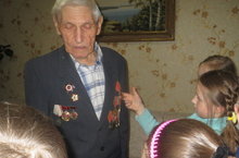 Ребята из тимуровского отряда сходили в гости к ветерану ВОВ Лобойко Ивану Тимофеевичу, которому в этом году исполнилось 93 года. Несмотря на преклонный возраст, Иван Тимофеевич рассказал ребятам о своей жизни. В августе 41 его призвали в армию. Пройдя артиллерийское училище он попал на фронт и командовал взводом пулеметчиков. Прошел всю войну без ранений, только дважды был контужен.