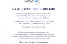 Большое спасибо учащимся нашего лицея: Либерману Ефиму, Гараеву Азату, Балобанову Руслану, Западнову Алексею, Заикину Семену, Хобта Владу, Пшеничникову Глебу, Хобта Михаилу, которые достойно выступили на олимпиаде.