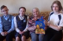 Ребята, из школьного отряда ЮнАрмии поздравили подшефного ветерана ВОВ с наступающим праздником 9 мая и вручили ей подарок