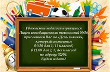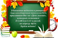 Уважаемые педагоги и учащиеся, приглашаем вас на День знаний, который состоится в 12.00 для 5-11 классов по адресу 44/16.