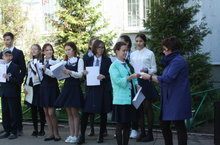 На крыльце Гимназии прошло торжественное мероприятие для 9ых классов, посвященное празднику последнего звонка.