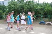 После тихого часа в лагере «Байконур» наступает час активных игр и спорта. Всегда есть желающие покататься на роликовых коньках по дорожке школьного стадиона.