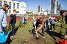 В рамках реализации гранта, полученного родителем нашей гимназии Юлией Сергеевной Сильченко в конкурсе «Экологический код», стартовали работы по благоустройству пришкольного участка.