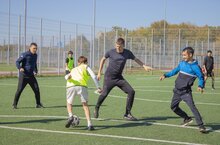 Яркое событие объединило поколения: на спортивной площадке встретились папы и дети в рамках открытия серии соревнований по футболу.