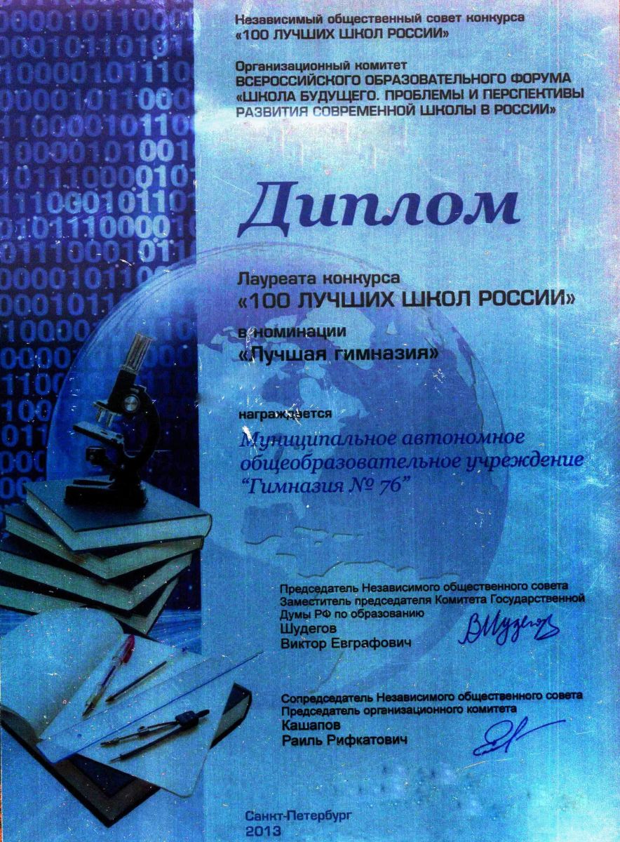 2013 год. Лауреат конкурса "100 лучших школ России" в номинации "Лучшая гимназия"