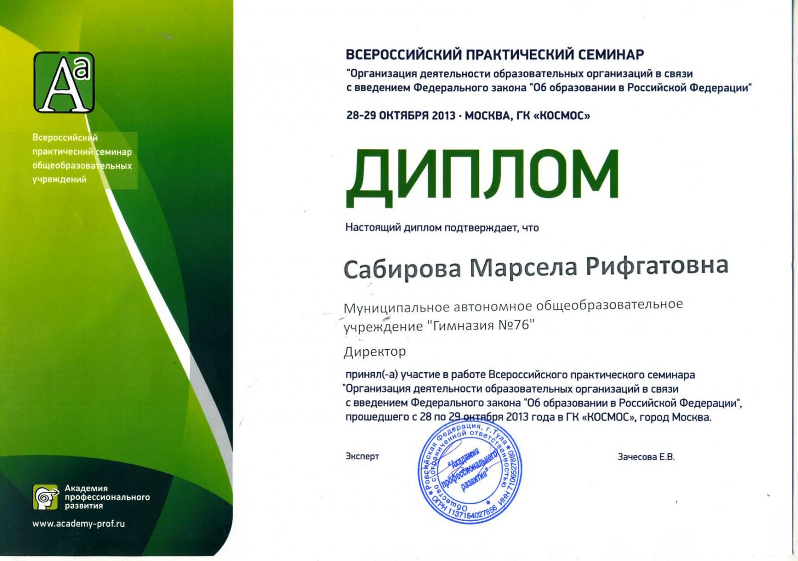 Участие во Всероссийском практическом семинаре 28-29 октября 2013 года.jpg